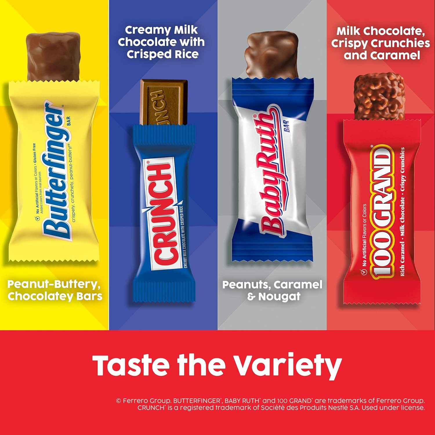 Assorted flavors: Butterfinger, CRUNCH, Baby Ruth, and 100 Grand
