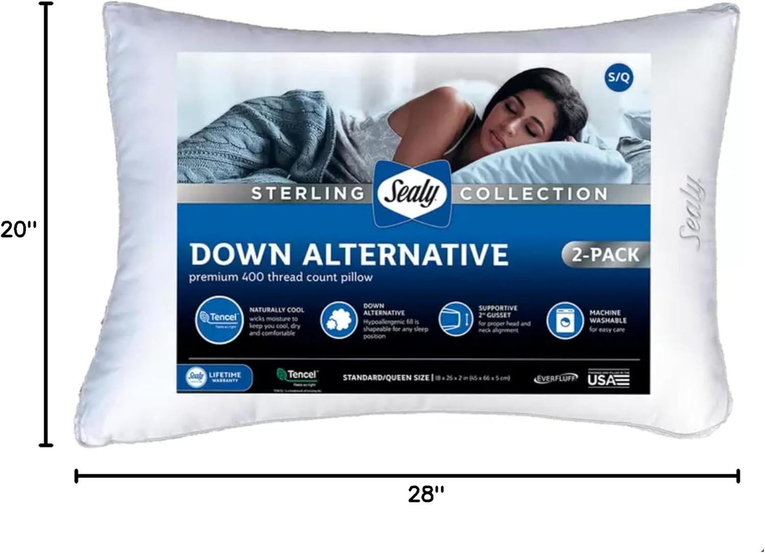 sealy Sterling Collection Down Alternative Pillows 400 Thread Queen - 2 Pack